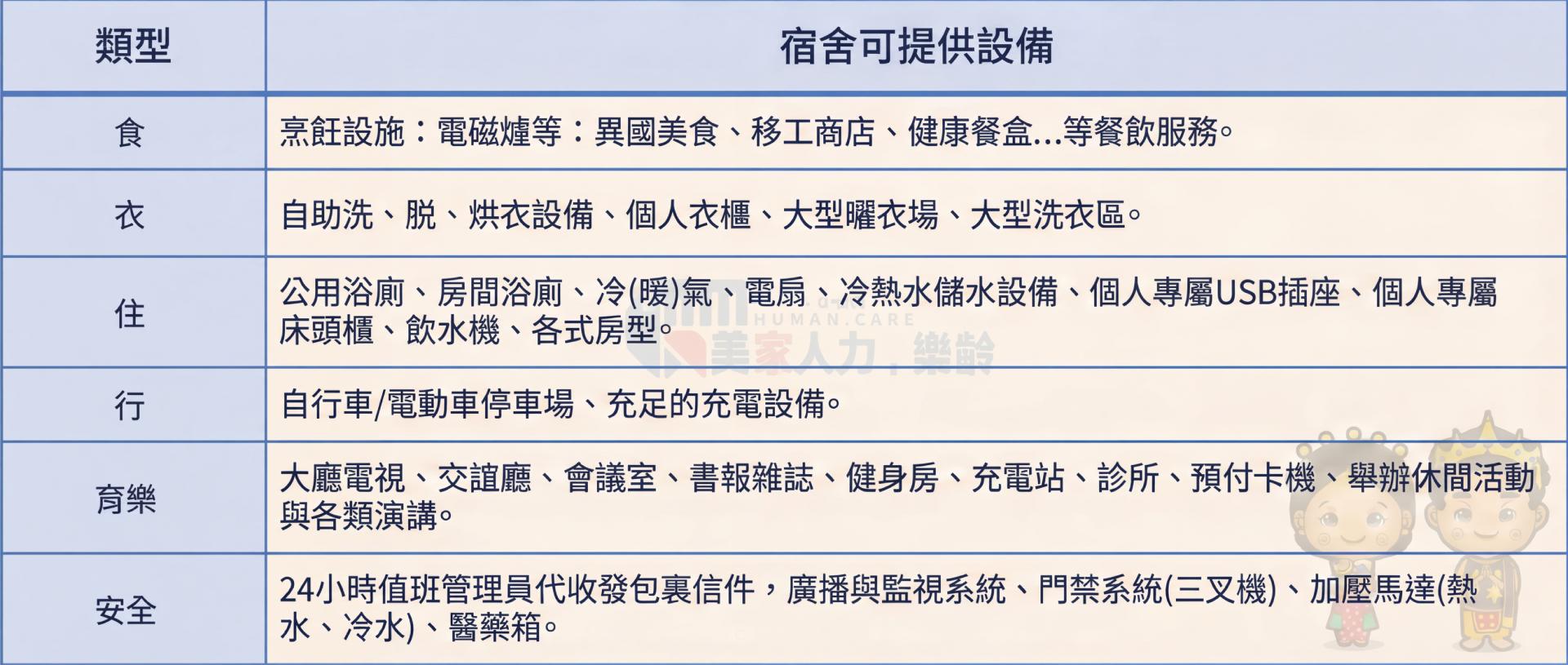 管理員配置:配置雙語管理人員,能與移工用母語溝通,提供即時性的服務。